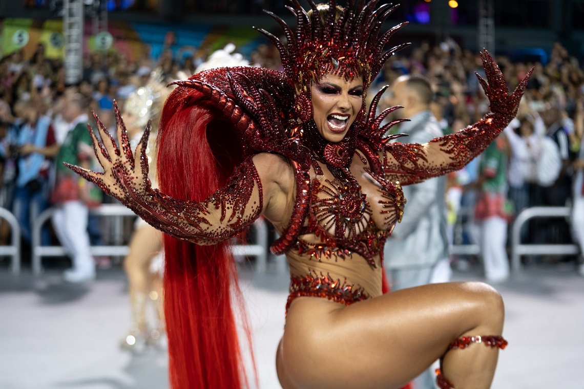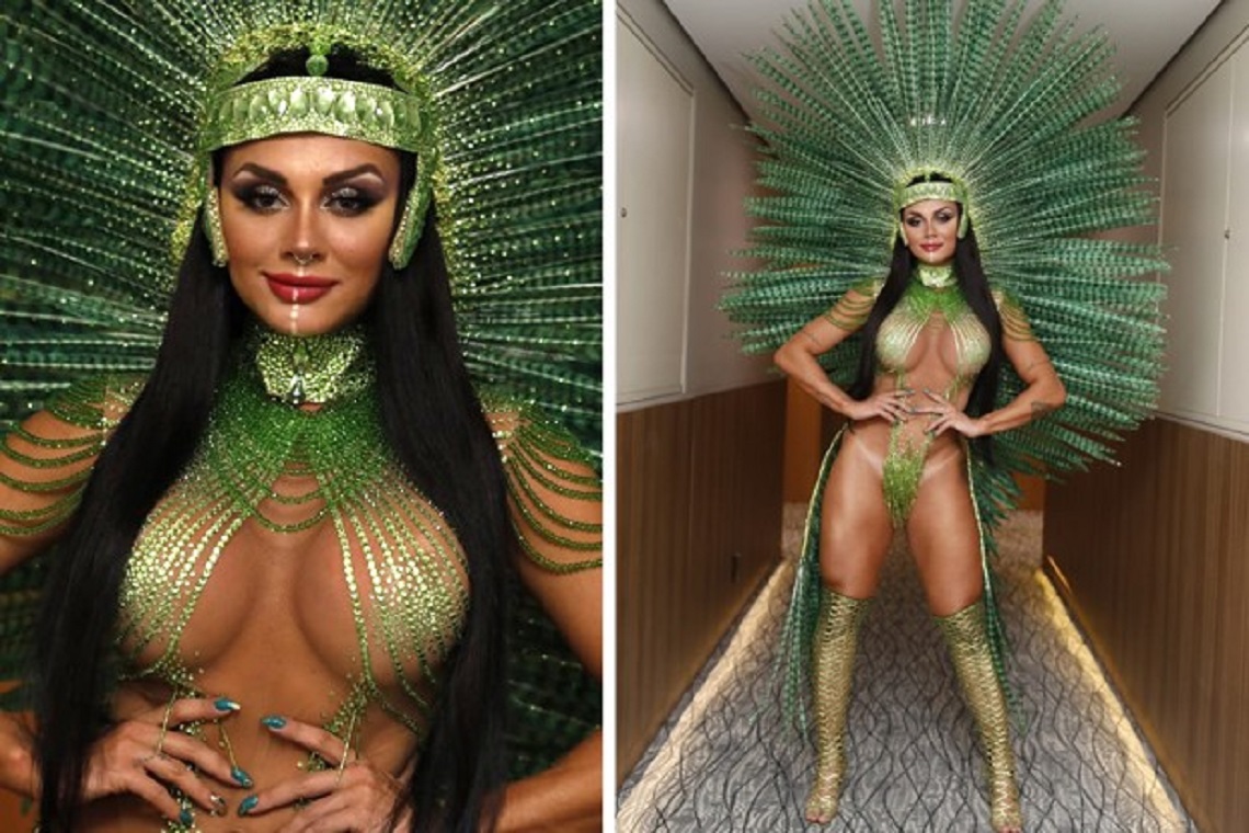 Rainha de bateria da X-9 Paulistana, musa fitness representa índia em desfile