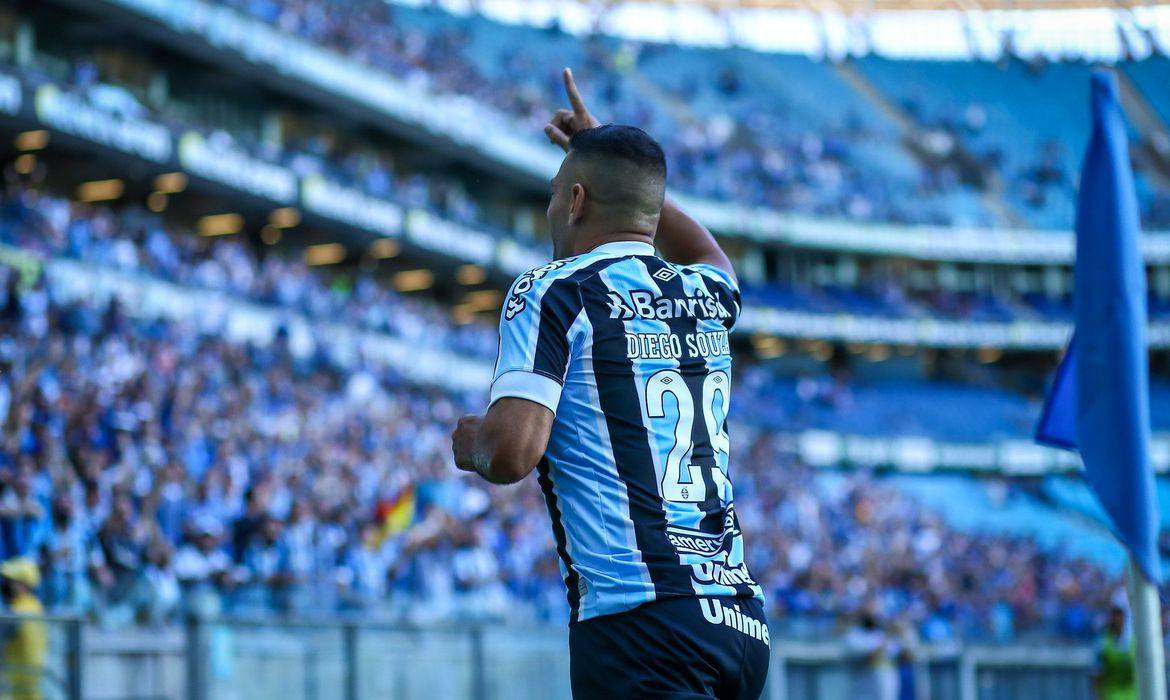 O duelo começou da melhor forma para o Grêmio e o técnico Roger Machado, que substituiu o demitido Vagner Mancini. Com apenas nove minutos de partida, Diego Souza já abriu o placar. E o fez em grande estilo: ele recebeu na entrada da área e com um toque sutil encobriu o goleiro Renan Rocha para marcar um belo gol.