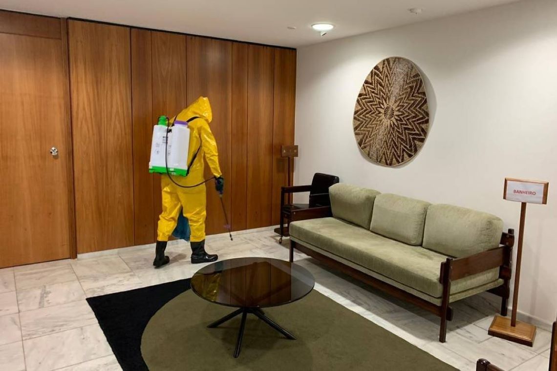 A Secretaria-Geral da Presidência da República informou na terça-feira que realizou "limpeza minuciosa" no gabinete de Jair Bolsonaro. A medida foi tomada depois que o presidente anunciou que testou positivo para Covid-19. No sábado, Bolsonaro teve febre e sentiu sintomas da doença. Uma equipe de profissionais de desinfecção, usando roupa apropriada, foi ao local com equipamentos para limpar a área.