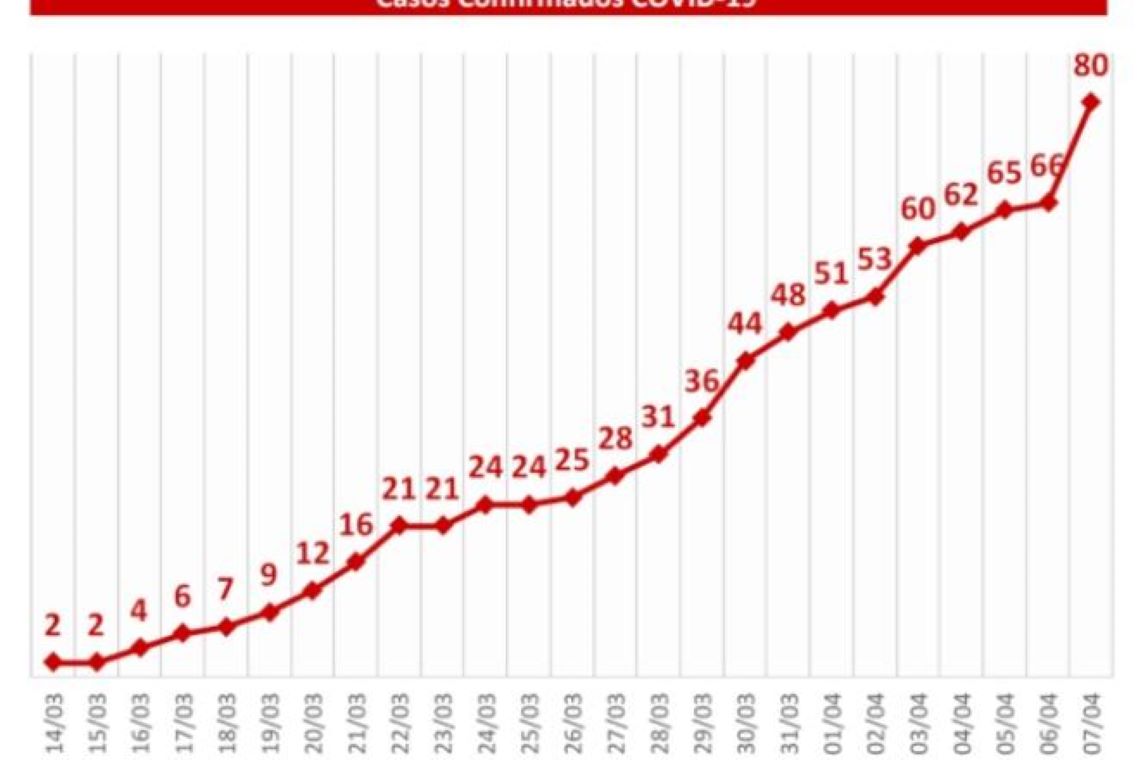 Estado teve 14 confirmações nas últimas 24h e chega a 80 o número de infectados