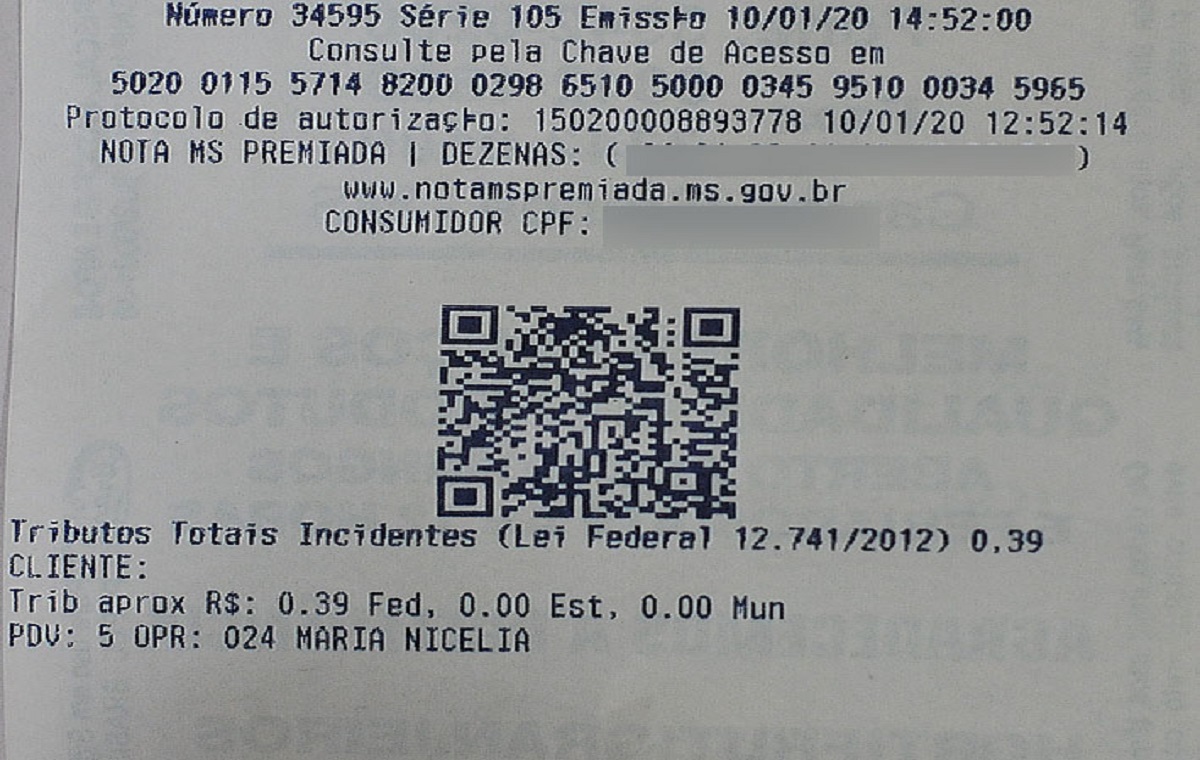 A chance de um consumidor ganhar o prêmio da Nota MS premiada é de 1 em 787.510