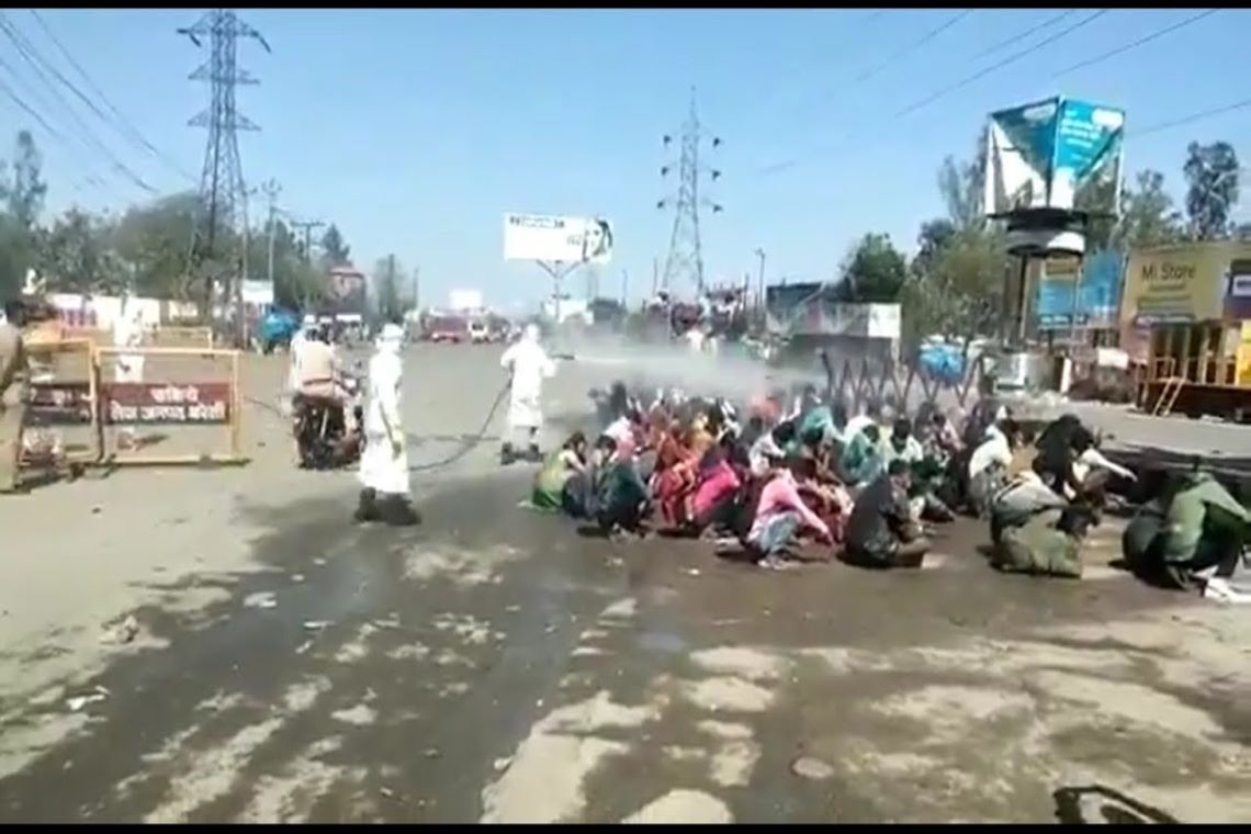 Um grupo de trabalhadores migrantes foi "desinfetado" por pulverização na cidade de Bareilly, no estado indiano de Uttar Pradesh. O incidente ocorreu nessa segunda-feira (30) e gera polêmica.