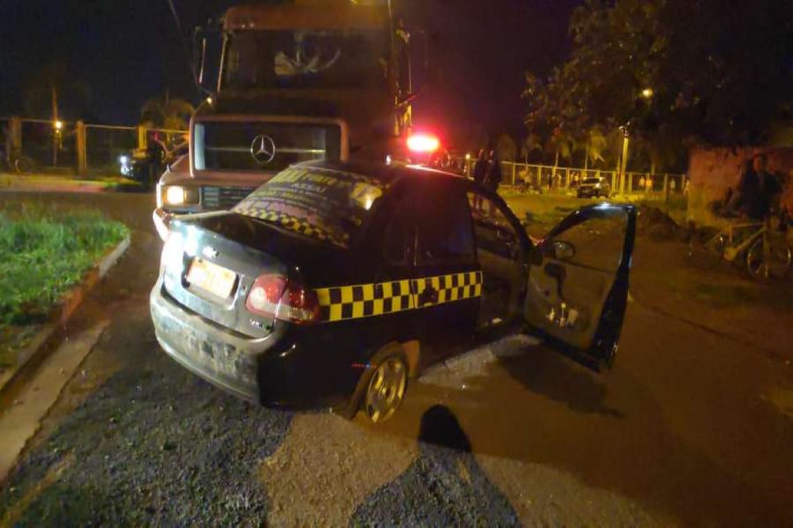 Colisão entre caminhão e táxi deixa motorista ferido