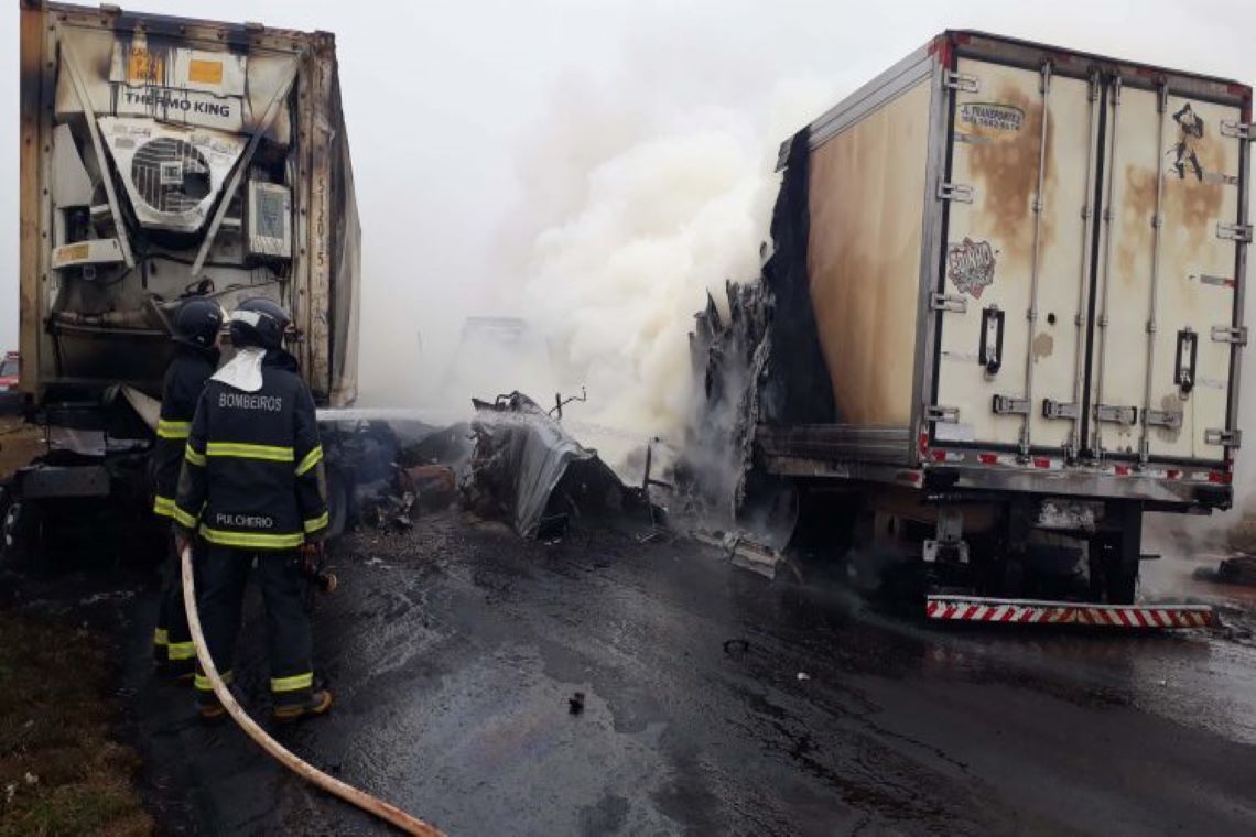 MS-306 - Colisão e incêndio em carretas deixando três mortes
