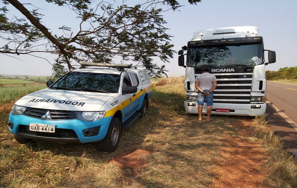 Polícia Militar Rodoviária prende motorista de carreta transportando 42.500 pacotes de cigarros.